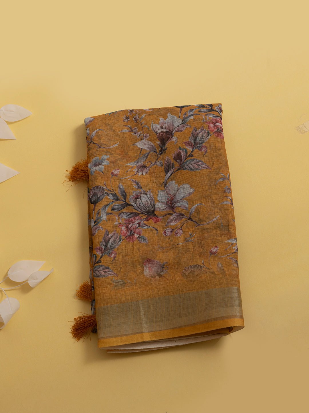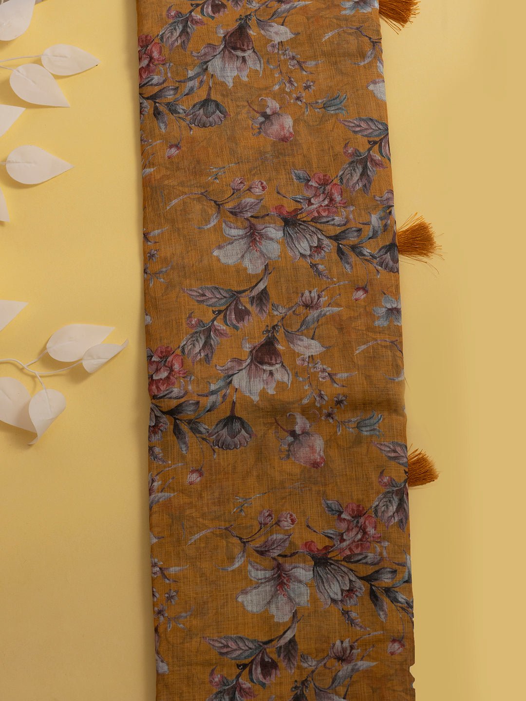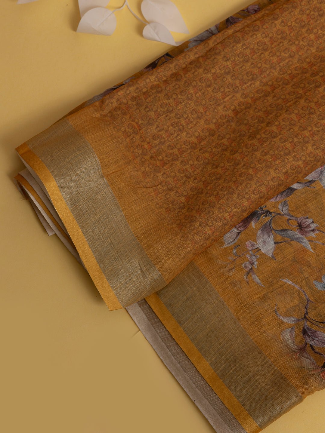 Women Semi Linen Digital Printed Saree Yellow SL180