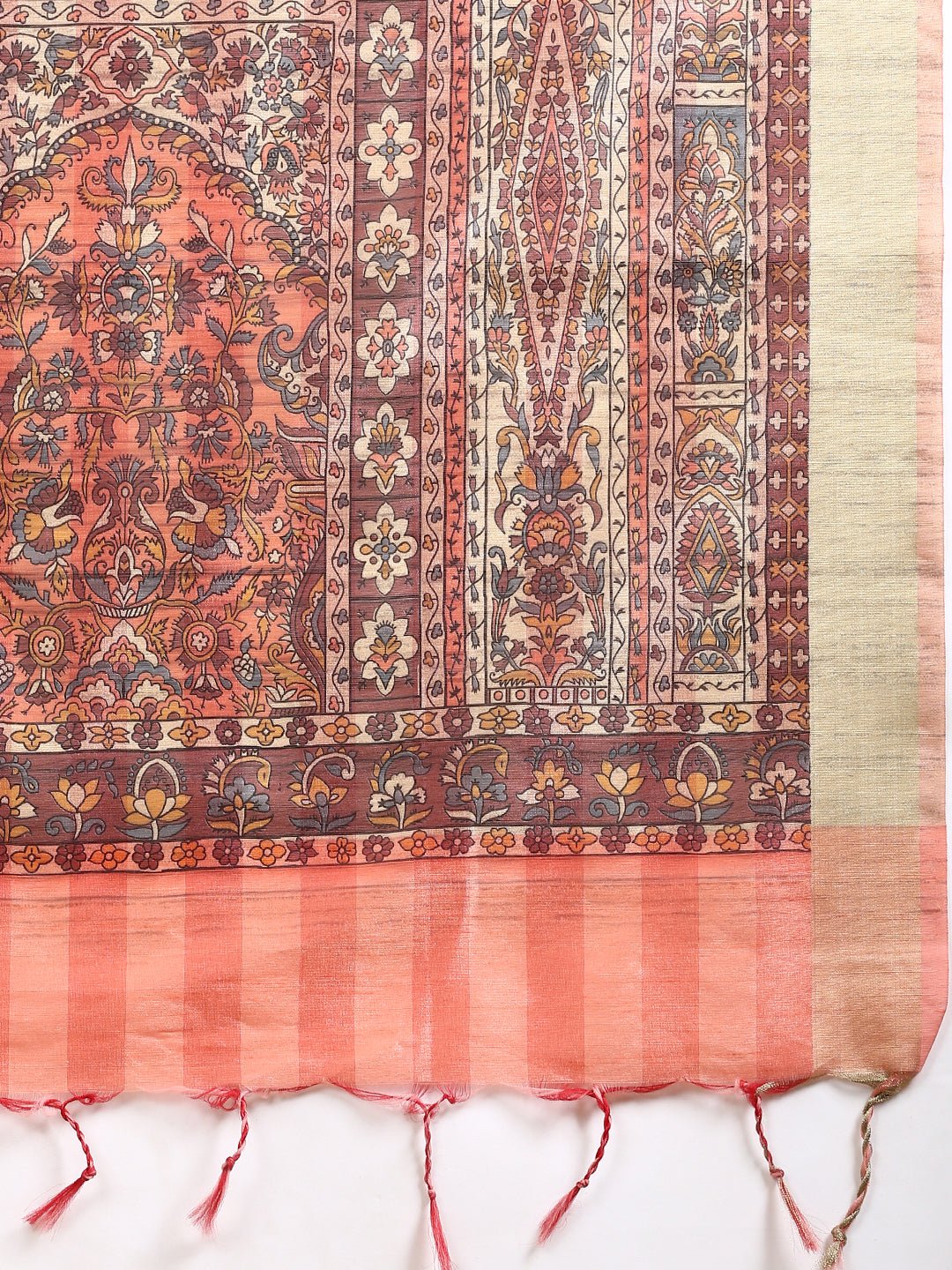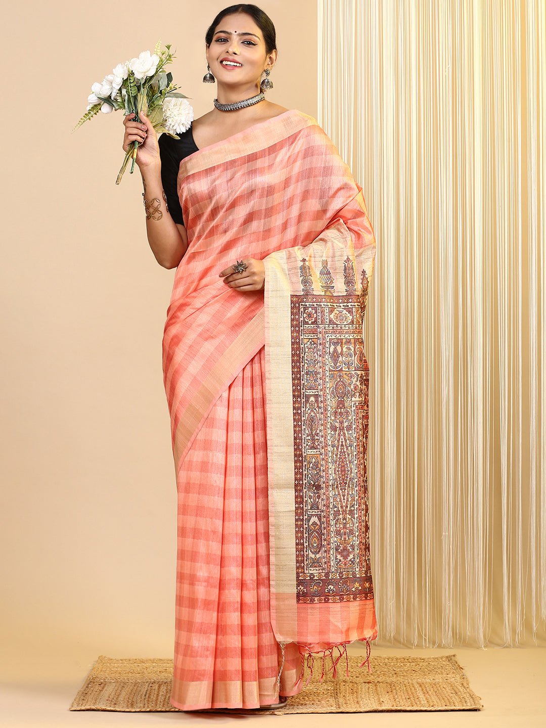 Women Semi Tussar Printed Saree Orange ST185