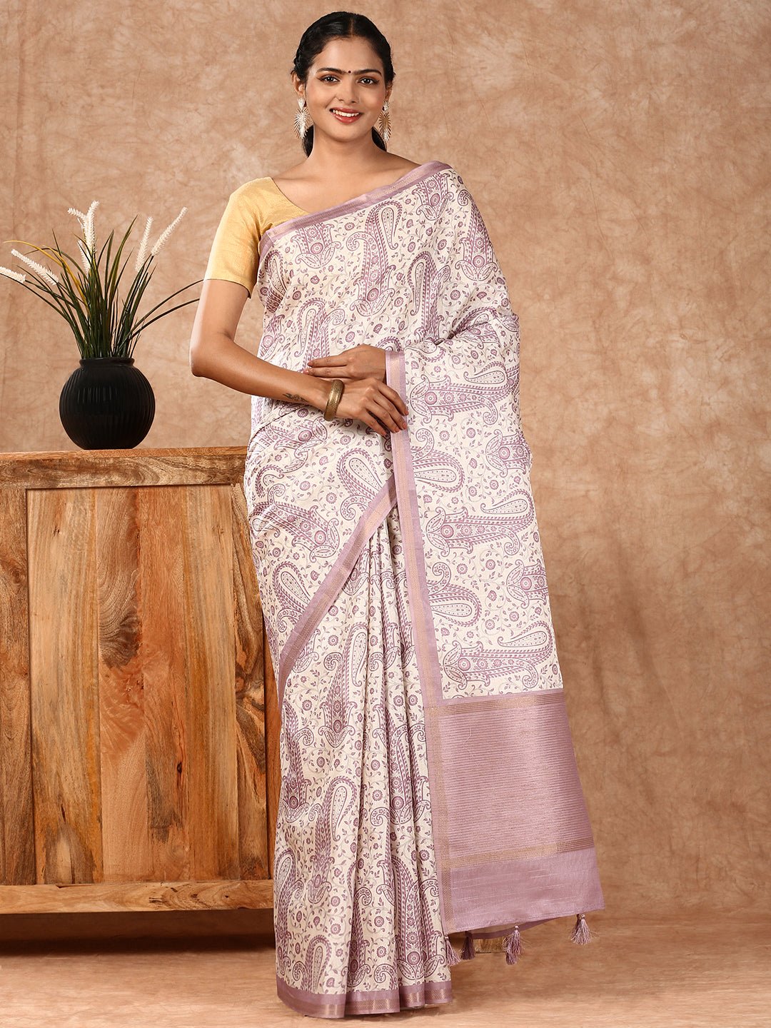 A Semi Tussar Printed saree is a type of Indian traditional garment made from a semi-tussar fabric that has been printed with a design. Semi Tussar Printed saree are lightweight, breathable, and easy to drape, making them ideal for all-day wear. They can be styled in a variety of ways, depending on the occasion and personal preference. They can be paired with a simple blouse for a casual look or with a heavily embellished blouse for a more formal event. Overall, a Semi Tussar Printed saree is a versatile and elegant garment that can add a touch of traditional charm to any wardrobe.